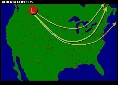 Classic Case: Occasionally the southern variant of the Alberta Clipper can produce near-blizzard conditions with heavy snows. Witness the January 22 - 24 2005 storm that formed over S AB before taking an east-southeast path into the VA Capes.